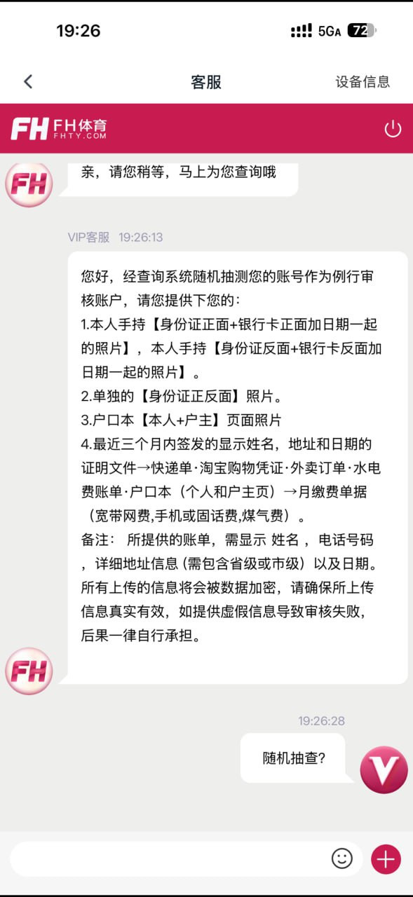 首次存款 2.5w 玩的都是世界赛跟cs的大赛 还有NBA 全部都是正常的赛事, 用2.5w 盈利了14w 取款的时候不能取款,我去联系在线客服 说:经查询 系统随机 抽测 我的账号作为例行审核账号 让我提供 本人身份证 生反面 单独身份证正反面 户口本首页 最近3个月的签发显示姓名 地址 淘宝 购物凭证 外卖订单 水单费 户口本 户主首页 各种各样的 信息