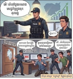 毛叔站起来,满脸自豪地解释:“你看——第一,我是在加强国家安全系统!如果没有我们去骗,柬埔寨人民还会很天真,不懂保护验证码(OTP),也不会识别假链接。正是我们,让他们‘觉醒’,提高警惕!”